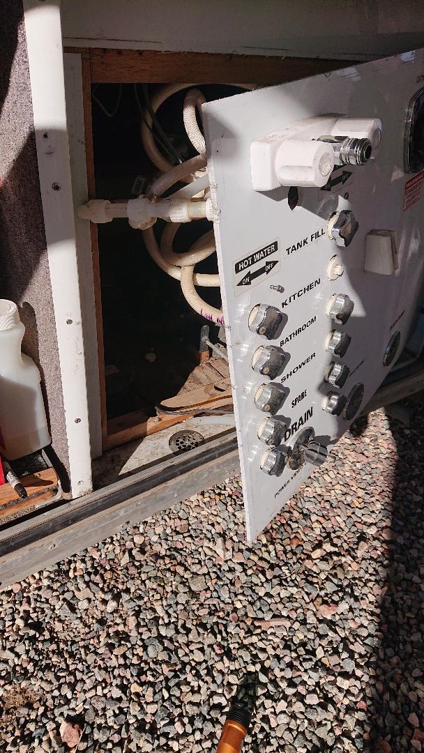 Was able to pull the wet wall out far enough to gain access to the bottom of the holding tanks where the sensors are located.  The sensor on the grey tank had residual in the sensor while the black tank had some obstruction in the fitting before the sensor.